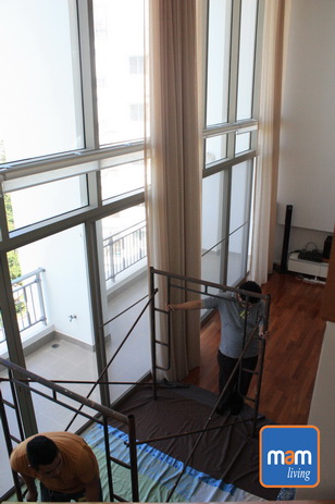 ก่อนติดตั้งต้องเตรียมนั่งร้านก่อน หลังจากติดตั้งรางด้วยการเสริมตัวจับพิเศษเพื่อให้รางรับน้ำหนักได้มากขึ้นแล้วก็เตรียมแขวนผ้าม่านได้ครับ