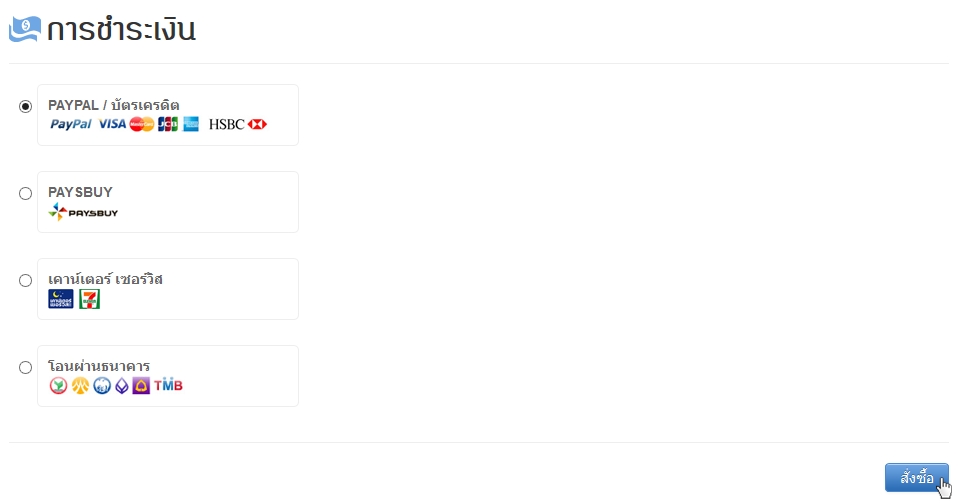 - เลือกวิธีการชำระเงินตามความสะดวก แล้วกด "สั่งซื้อ"